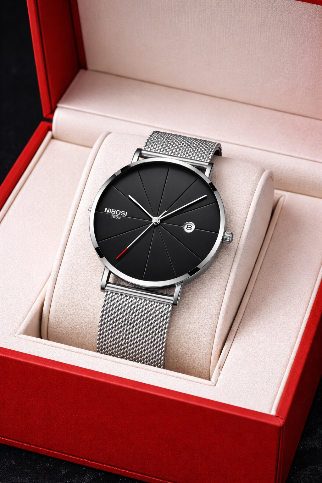 Featuring a quartz movement for precise timekeeping, this watch is equipped with a calendar display to help you stay organized. The mineral tempered glass mirror provides durability and a clear view of the stunning dial, which has a slender thickness of just 6.5mm.